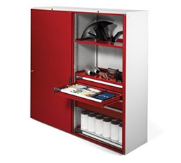 Cabinets comes with hinged doors, sliding doors, or roller shutter doors ,with a wide range of accessories such as: shelves, drawers, dividers, containers, boxes, removable frames and worktops.